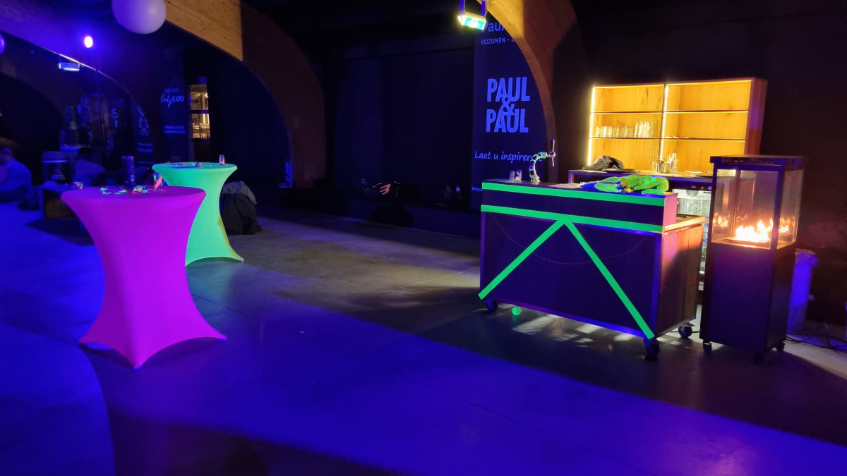 glow in the dark feestversiering, UV-tape, volleyballen en opvallende kleding!